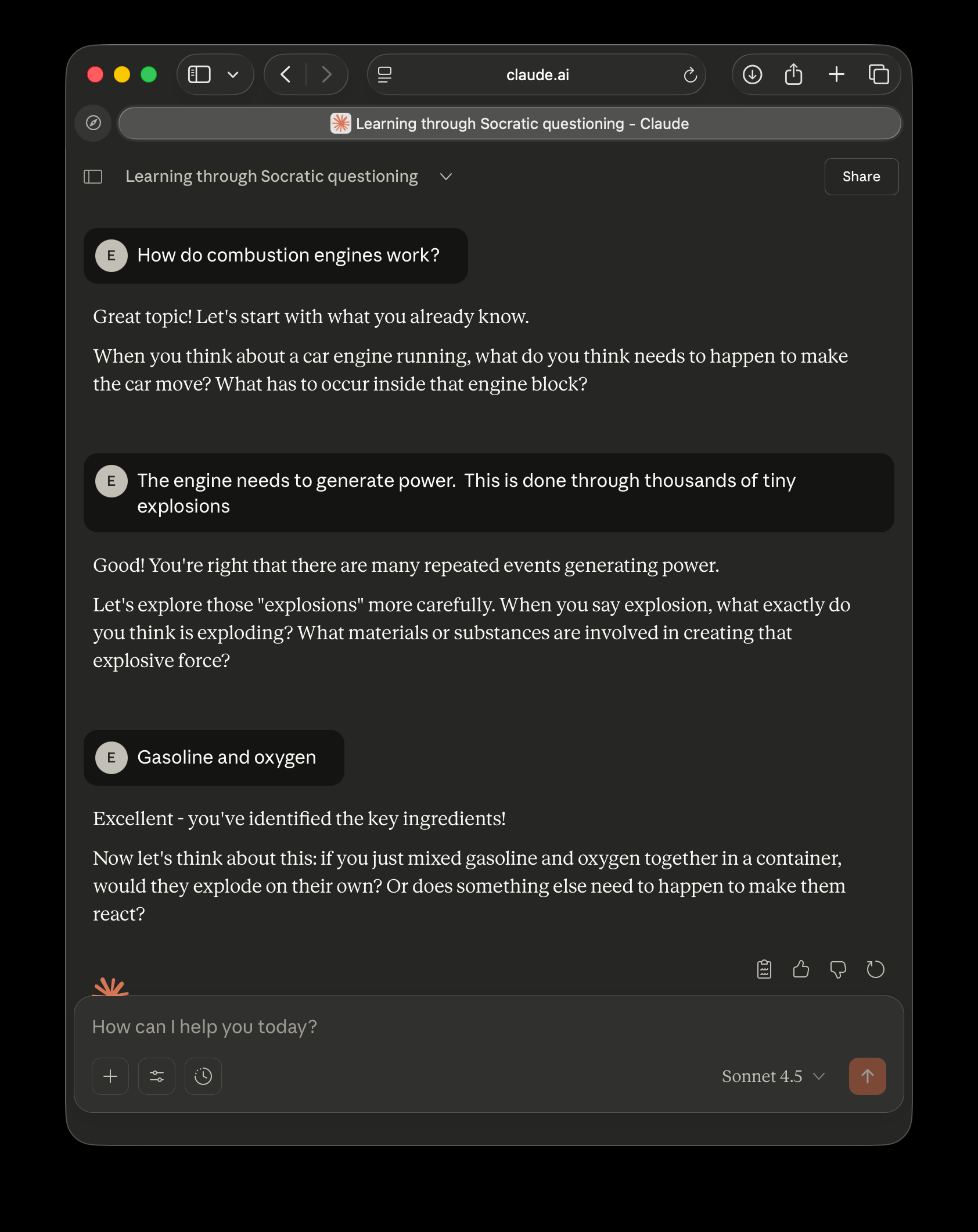 The Socratic method, named after Socrates, is a popular technique used in law school and scholarly debate. It dissects ideas through questioning, forcing the student to examine every assumption. Rather than lecturing, the instructor asks questions to probe the subject, deeply engaging the learner. Being able to interact with a machine in this manner is extraordinary.